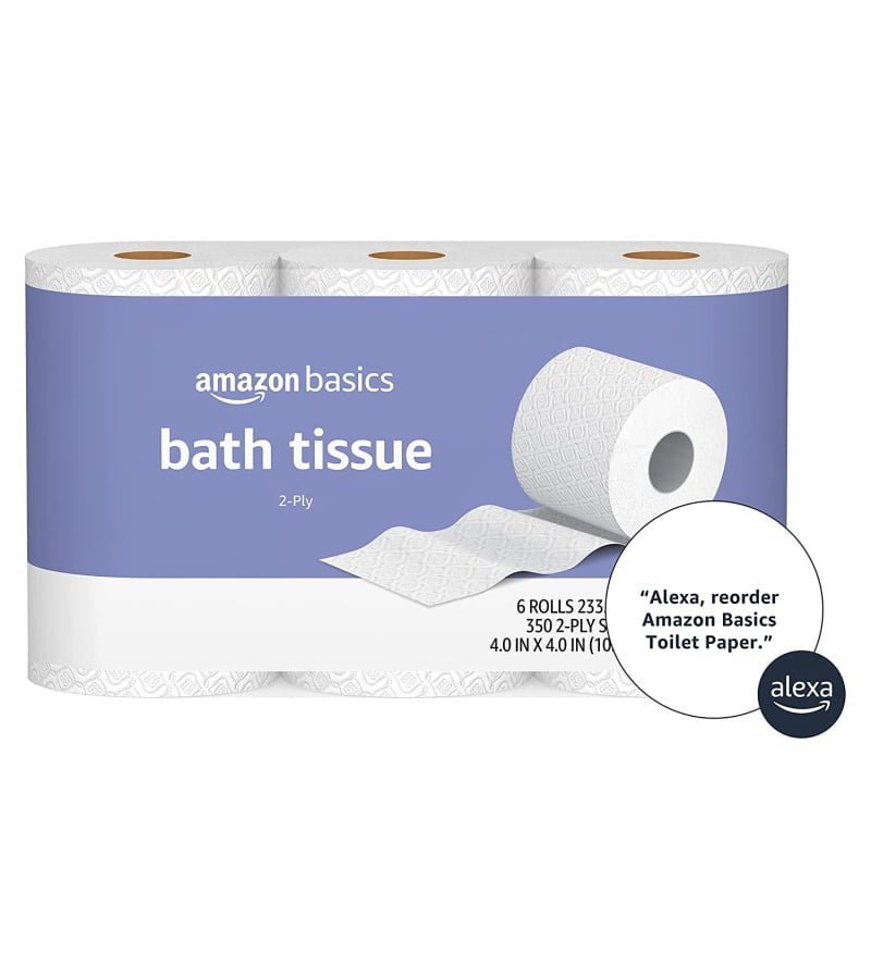 Alexa voice shopping enabled: to place your next order. just say. Alexa. reorder Amazon Basics Toilet Paper