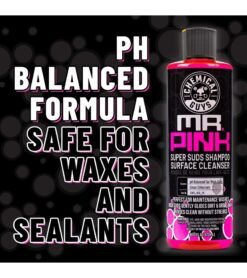 Mr. Pink is the perfect maintenance car wash shampoo that is tough on dirt. yet gentle on wax and sealant with slick lubricants that gently guide dirt and grime off the car for a scratch free wash!