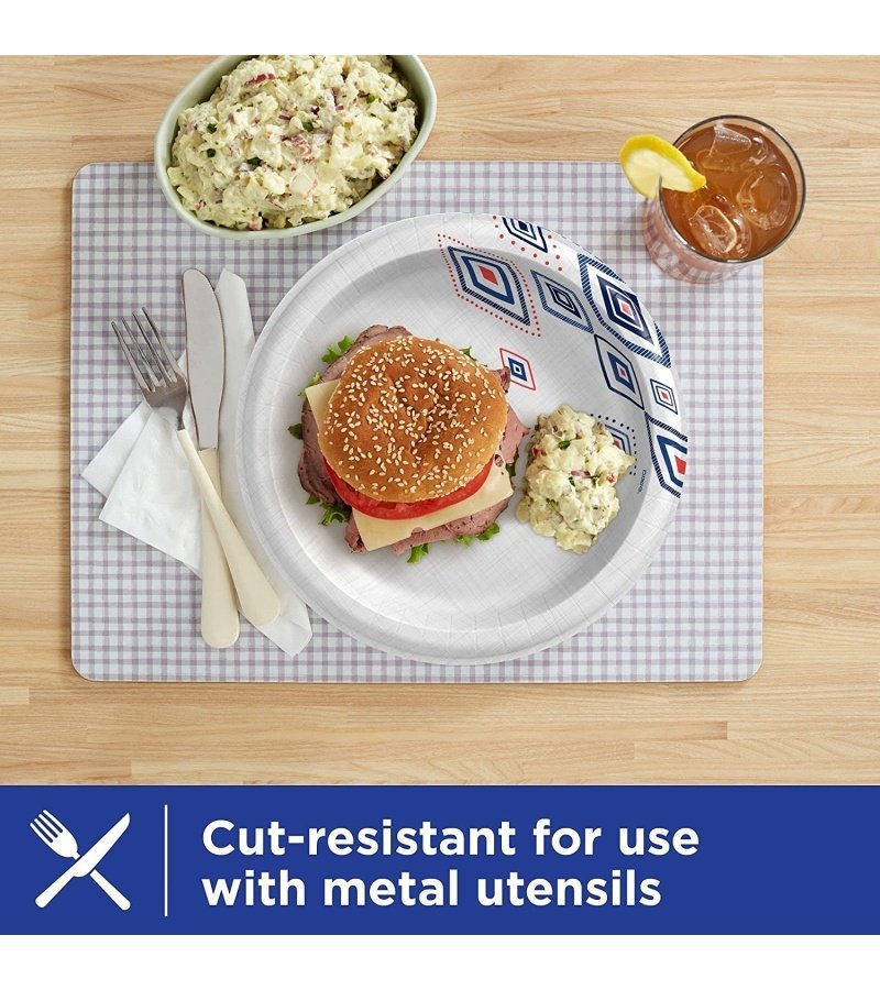 Microwave Safe. Cut Resistant. and Soak-Proof Shield that can handle anything from salad dressing to burger grease