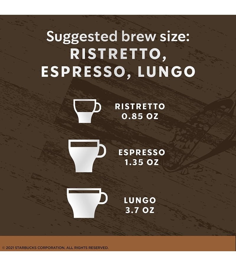 | Drink Size Suggestion | Ristretto (0.85 oz.). Espresso (1.35 oz.) | Lungo (3.7 oz.) | Lungo (3.7 oz.) | Espresso (1.35 oz.) | Espresso (1.35 oz.) |