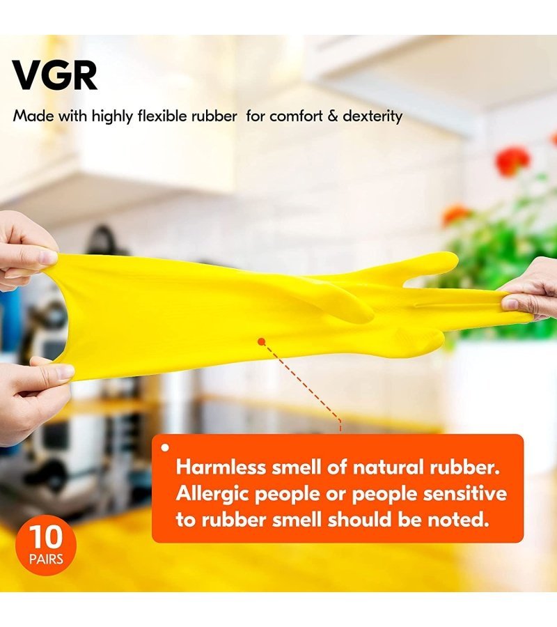 Vgo?? 10-Pairs Reusable Household Gloves. Rubber Dishwashing gloves. Extra Thickness. Long Sleeves. Kitchen Cleaning. Working. Painting. Gardening. Pet Care (Size M. Yellow. HH4601)